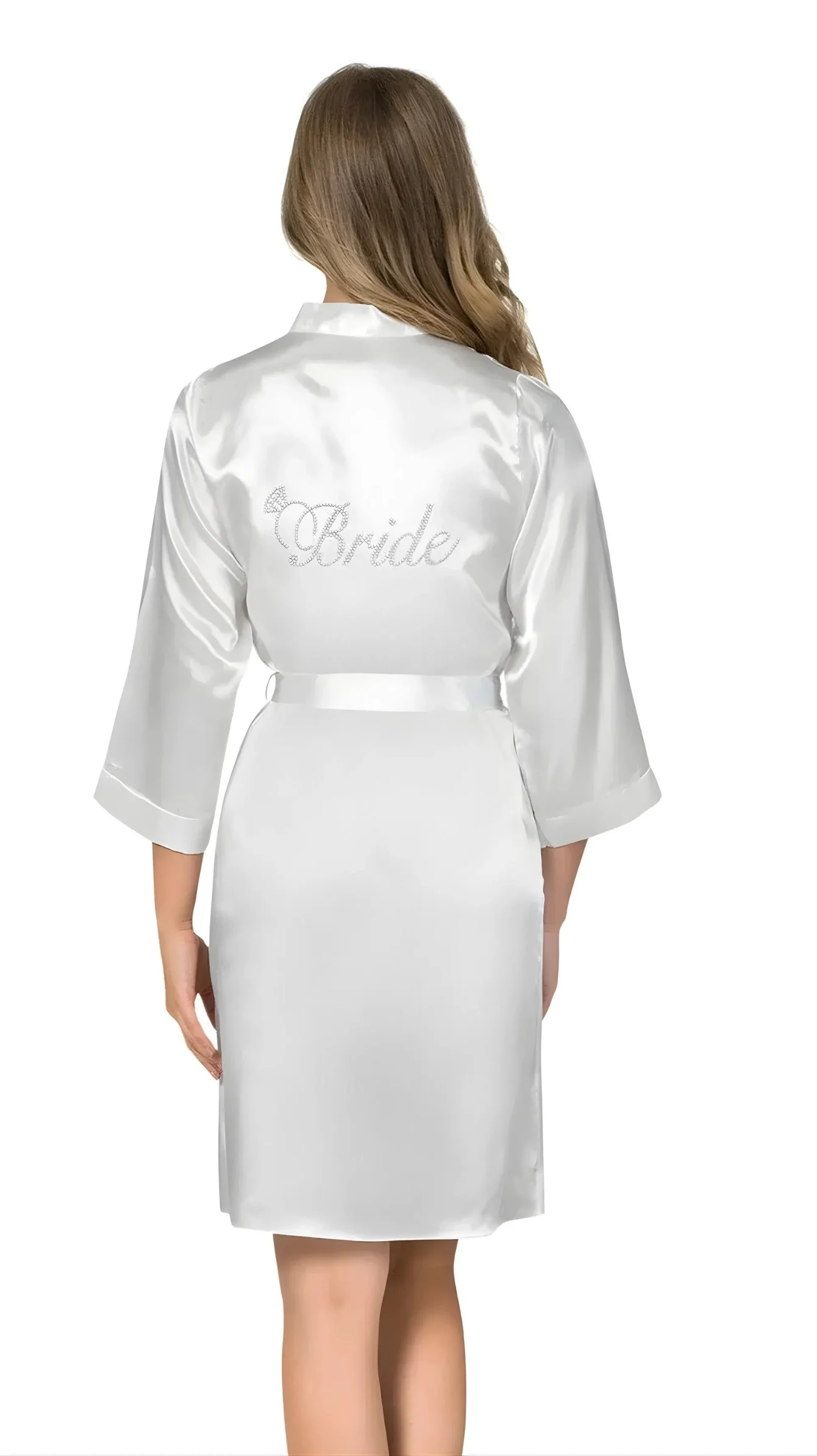 Beyaz Kısa Saten Bride Sabahlık