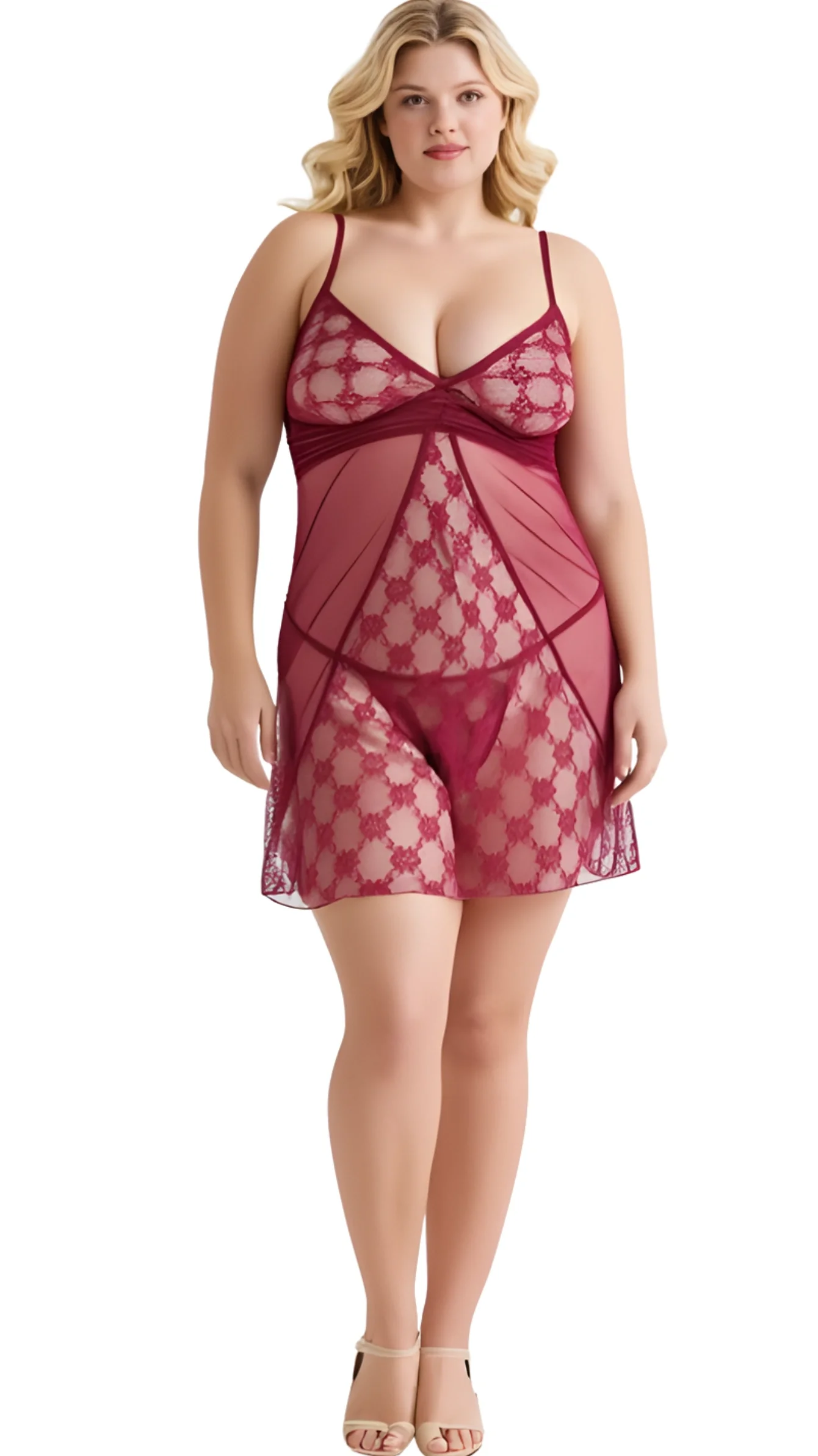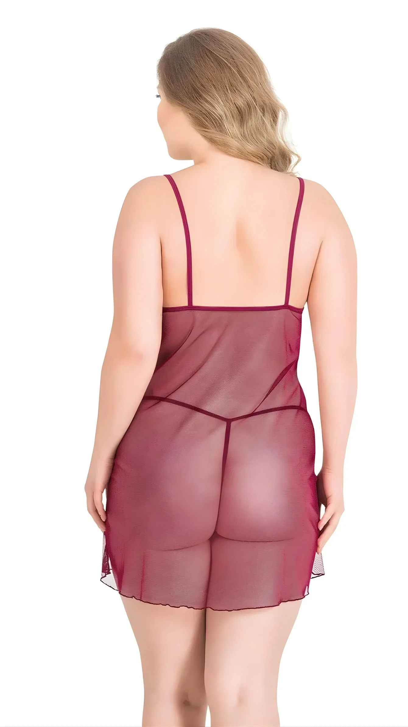 Büyük Beden Bordo Kısa Tül Gecelik 3022