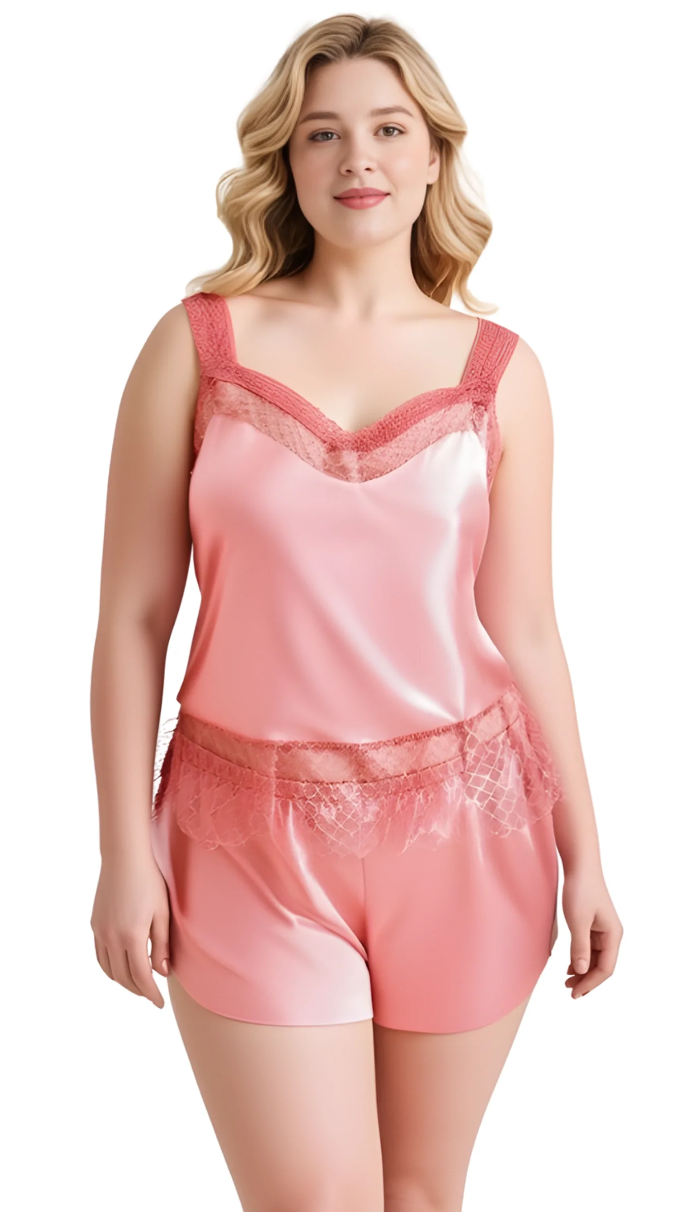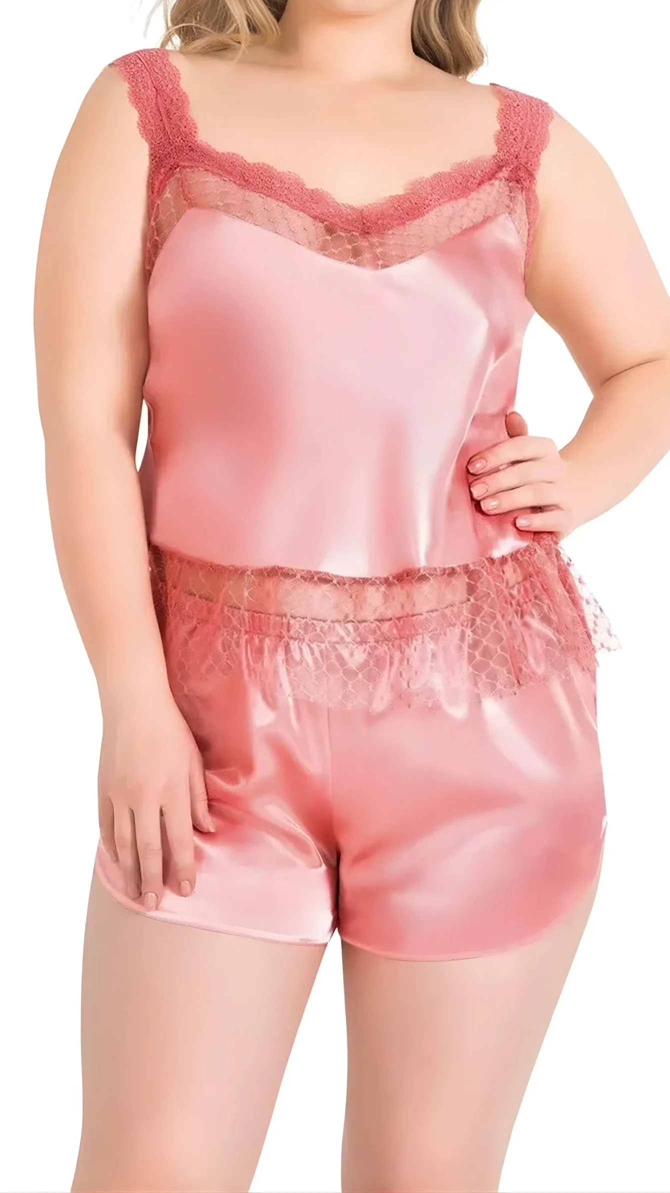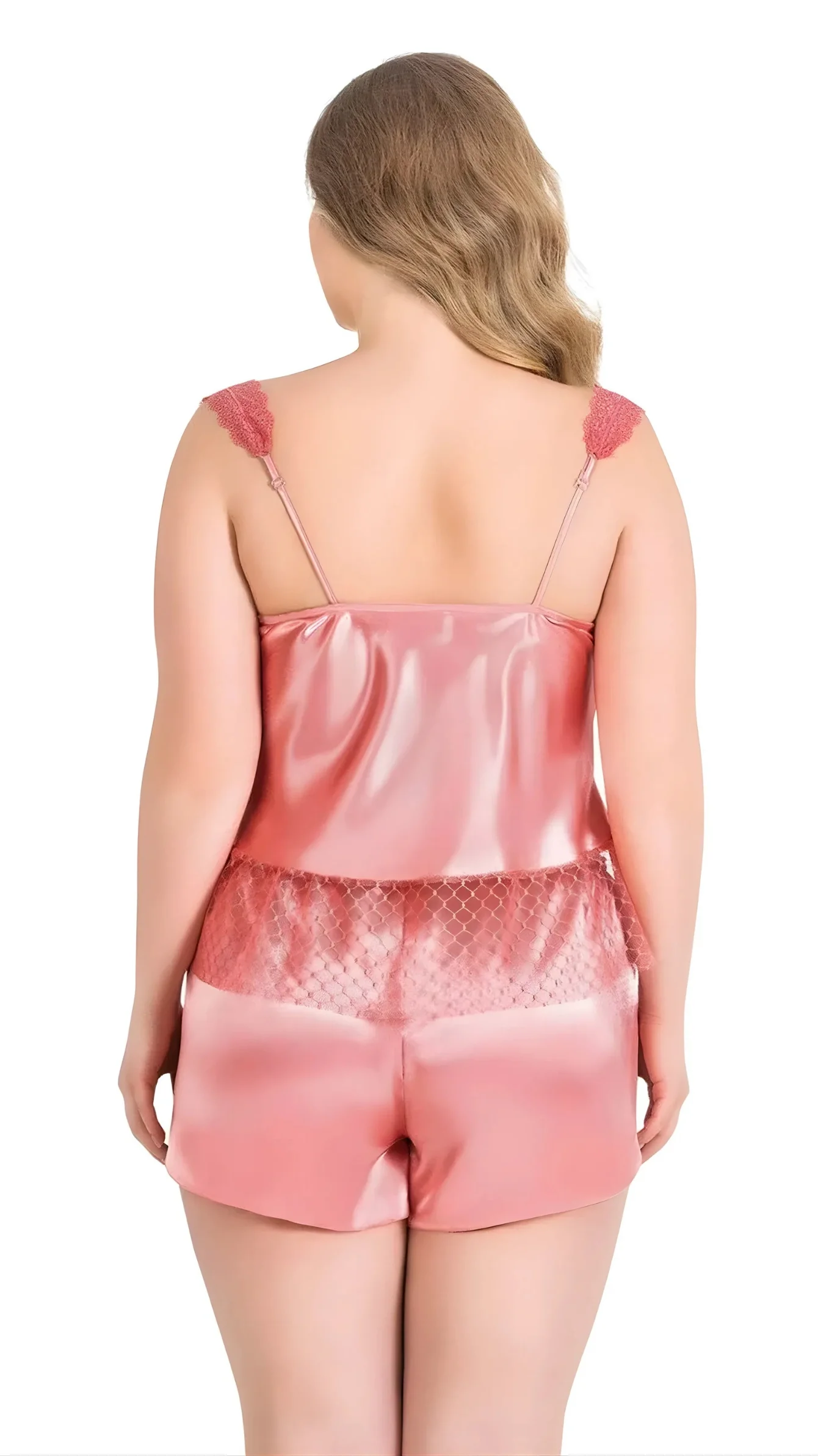 Büyük Beden Mercan Saten Babydoll Şort Takımı 1058