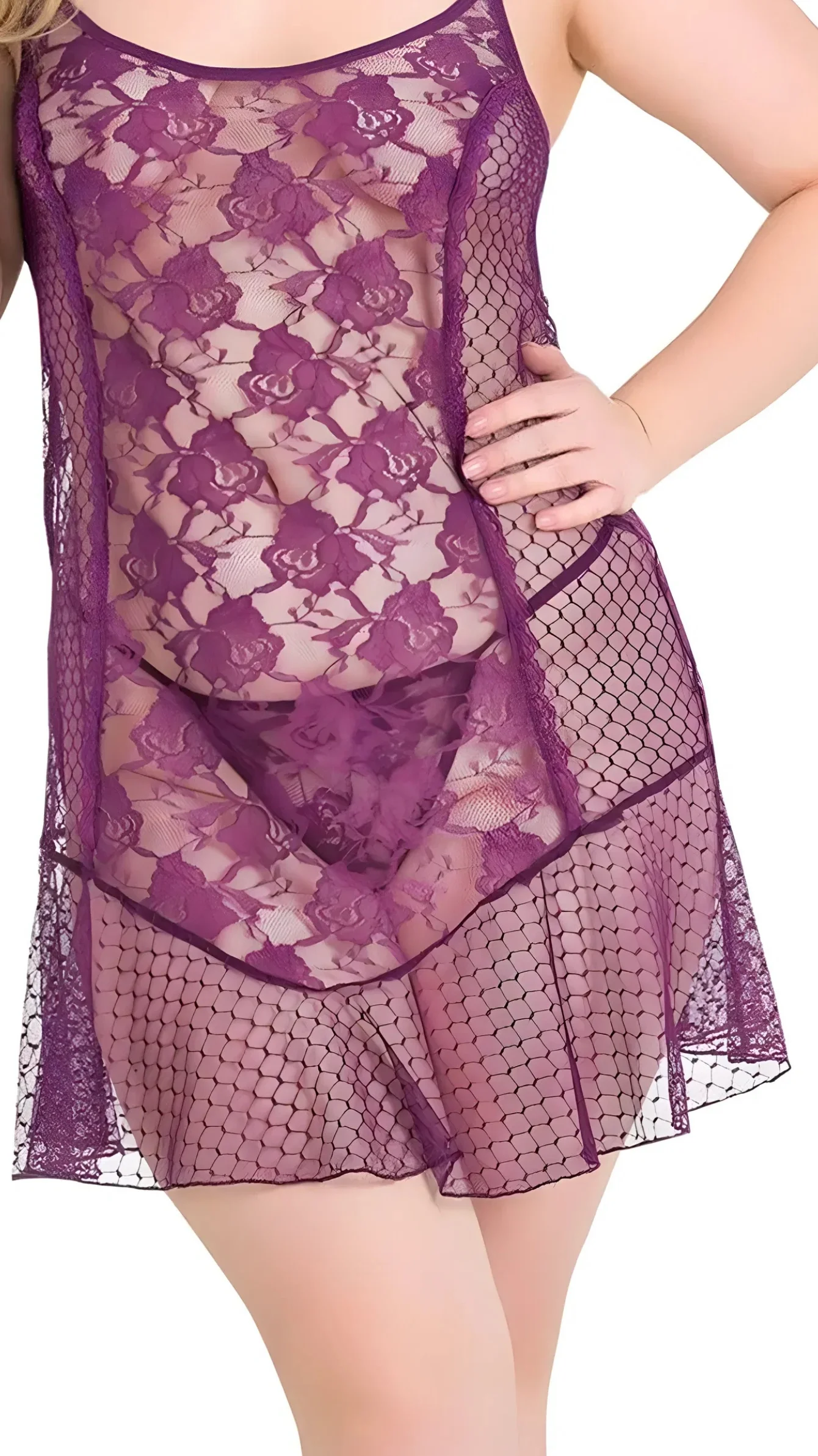 Büyük Beden Mor Kısa Tül Gecelik 3031