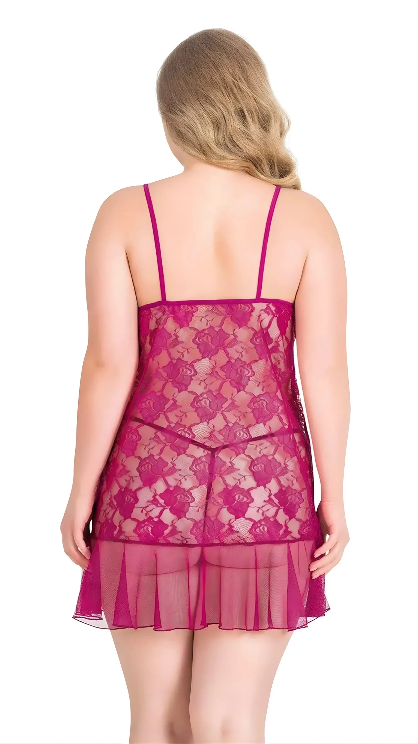 Büyük Beden Vişne Kısa Tül Gecelik 3028