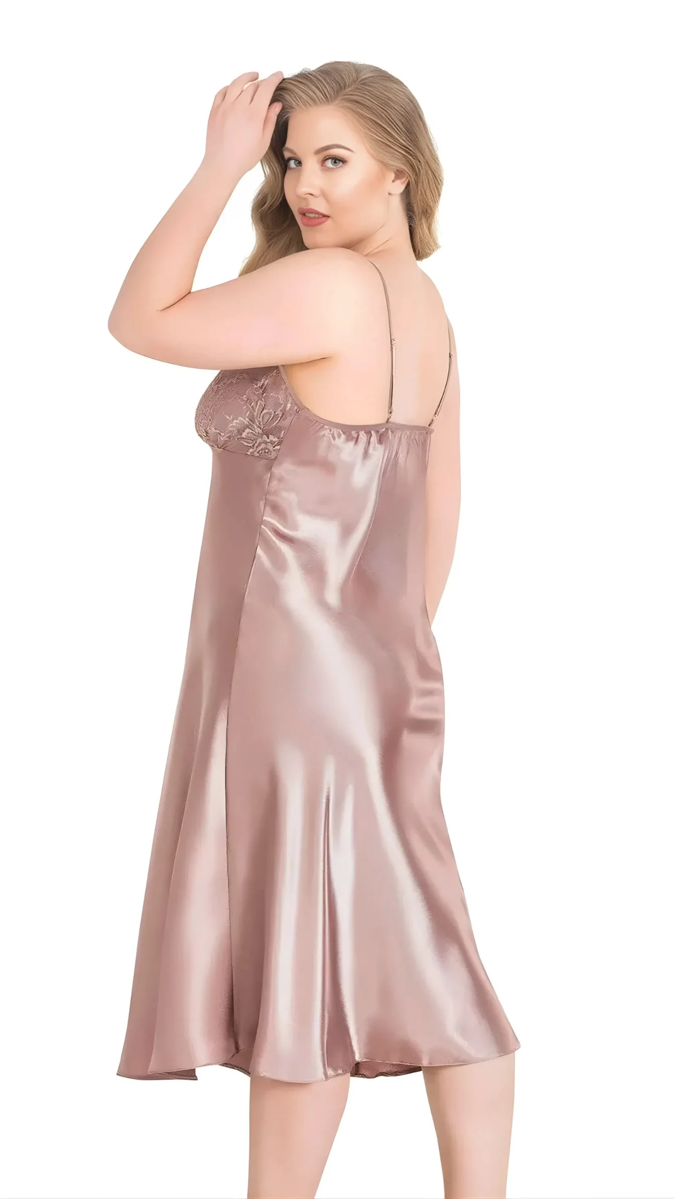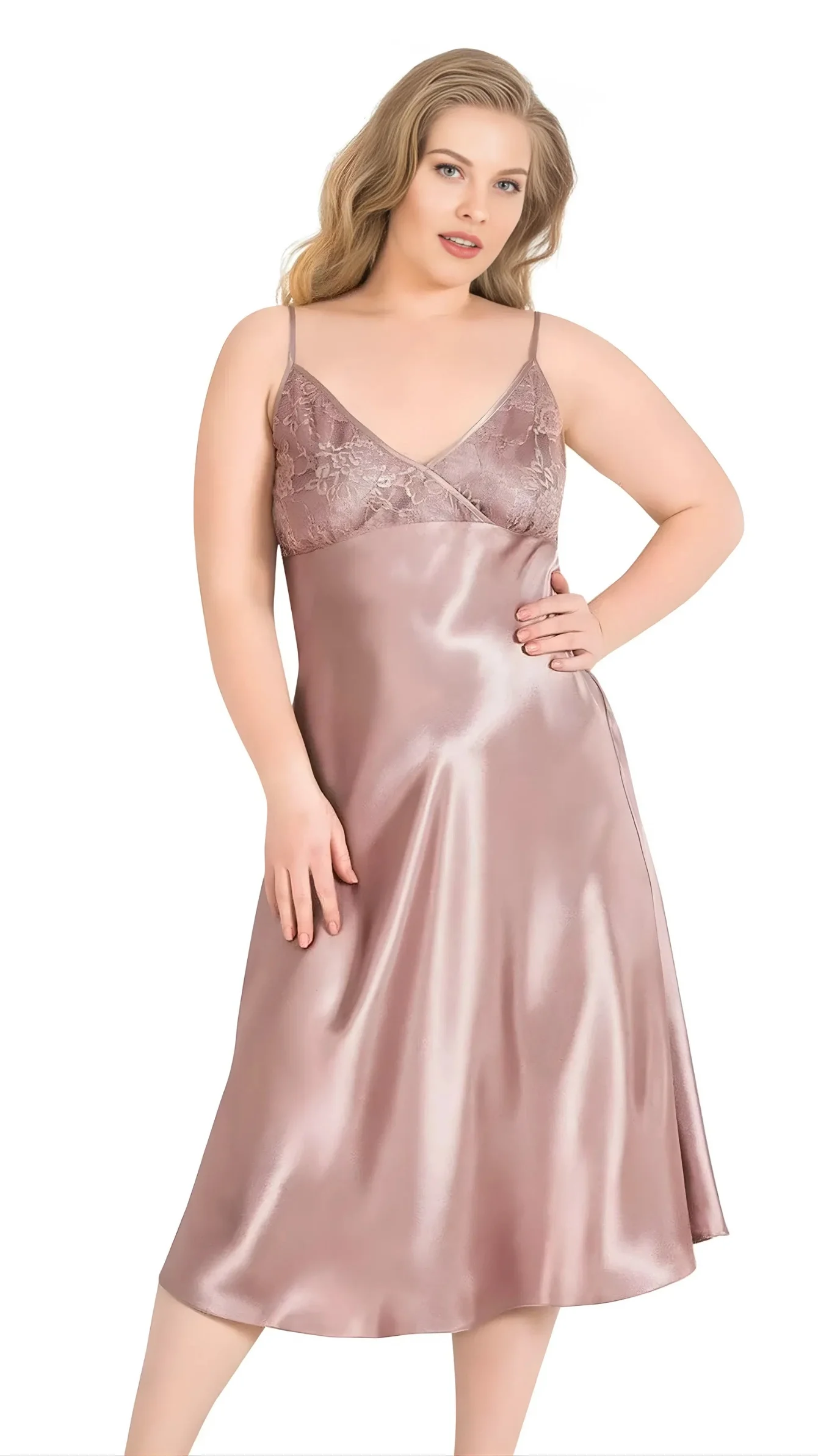 Büyük Beden Vizon Uzun Saten Gecelik 2072