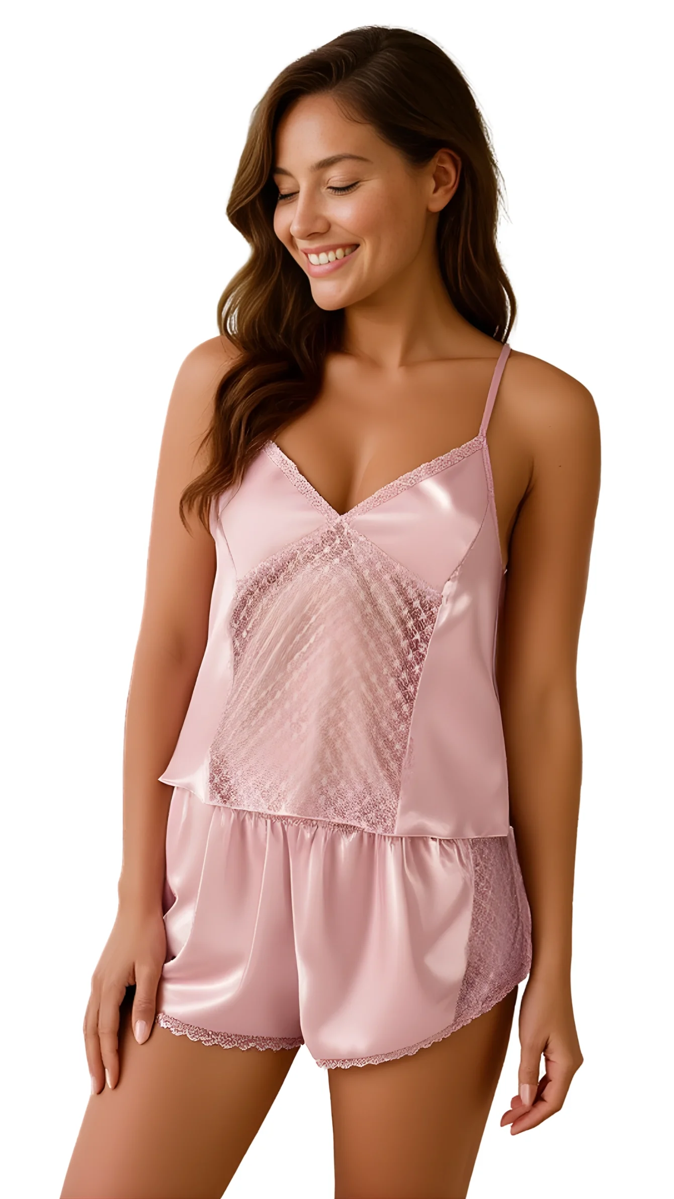 Koyu Pudra Saten Babydoll Şort Takımı 9114