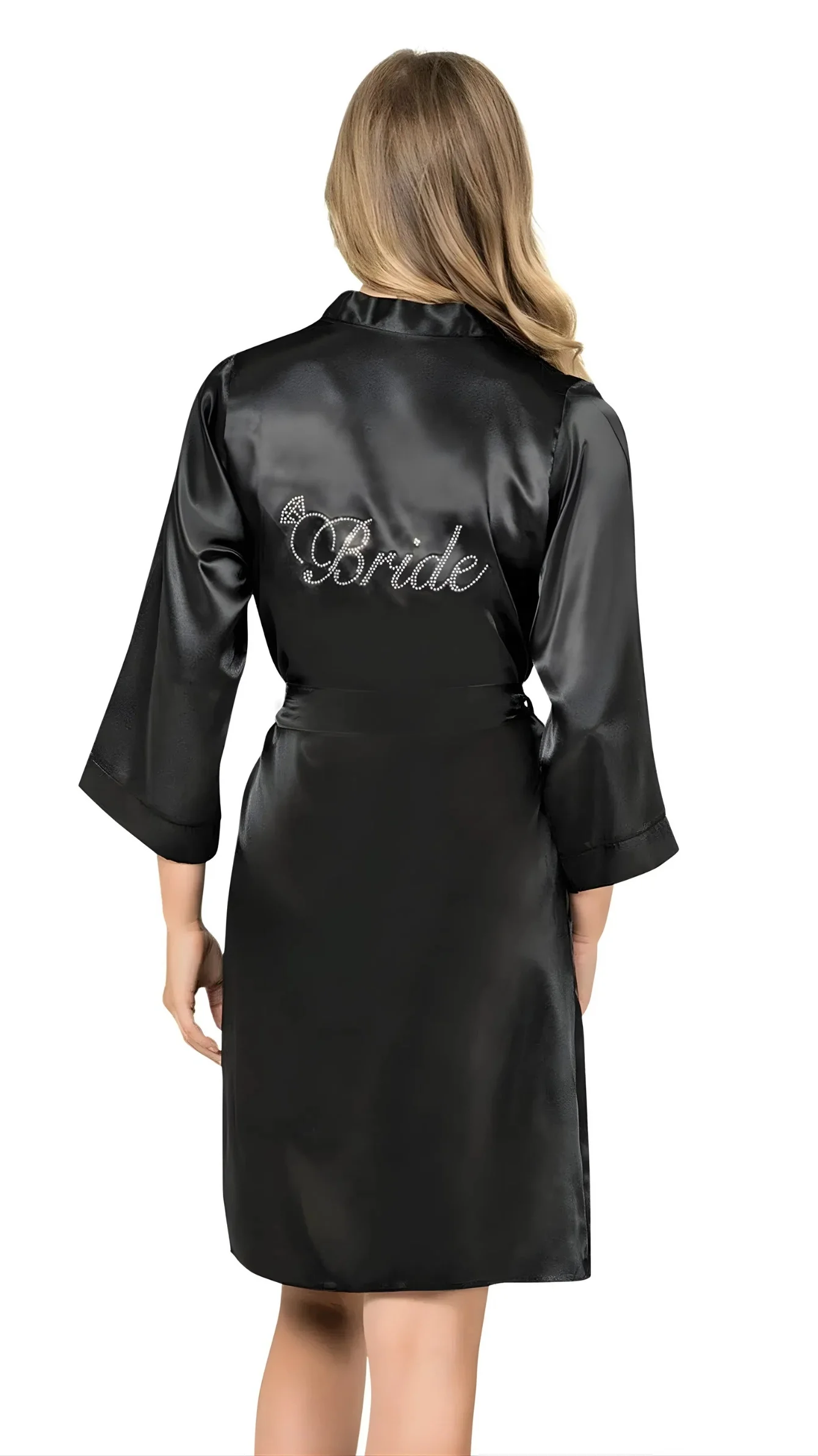 Siyah Kısa Saten Bride Sabahlık