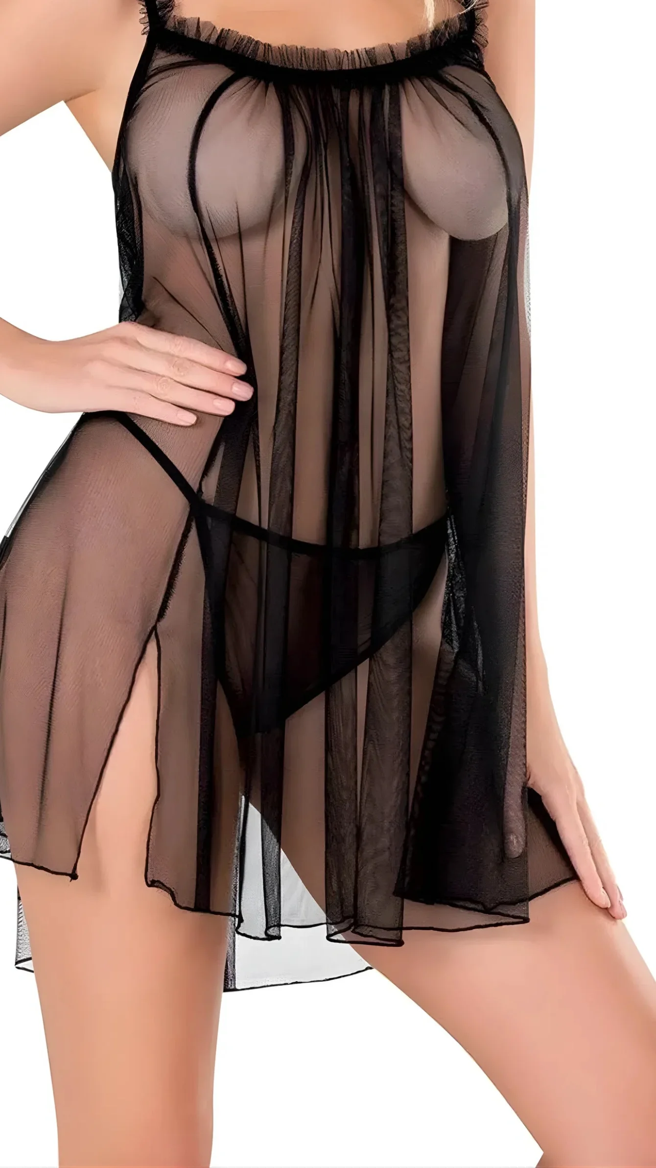 Siyah Kısa Tül Gecelik 4138