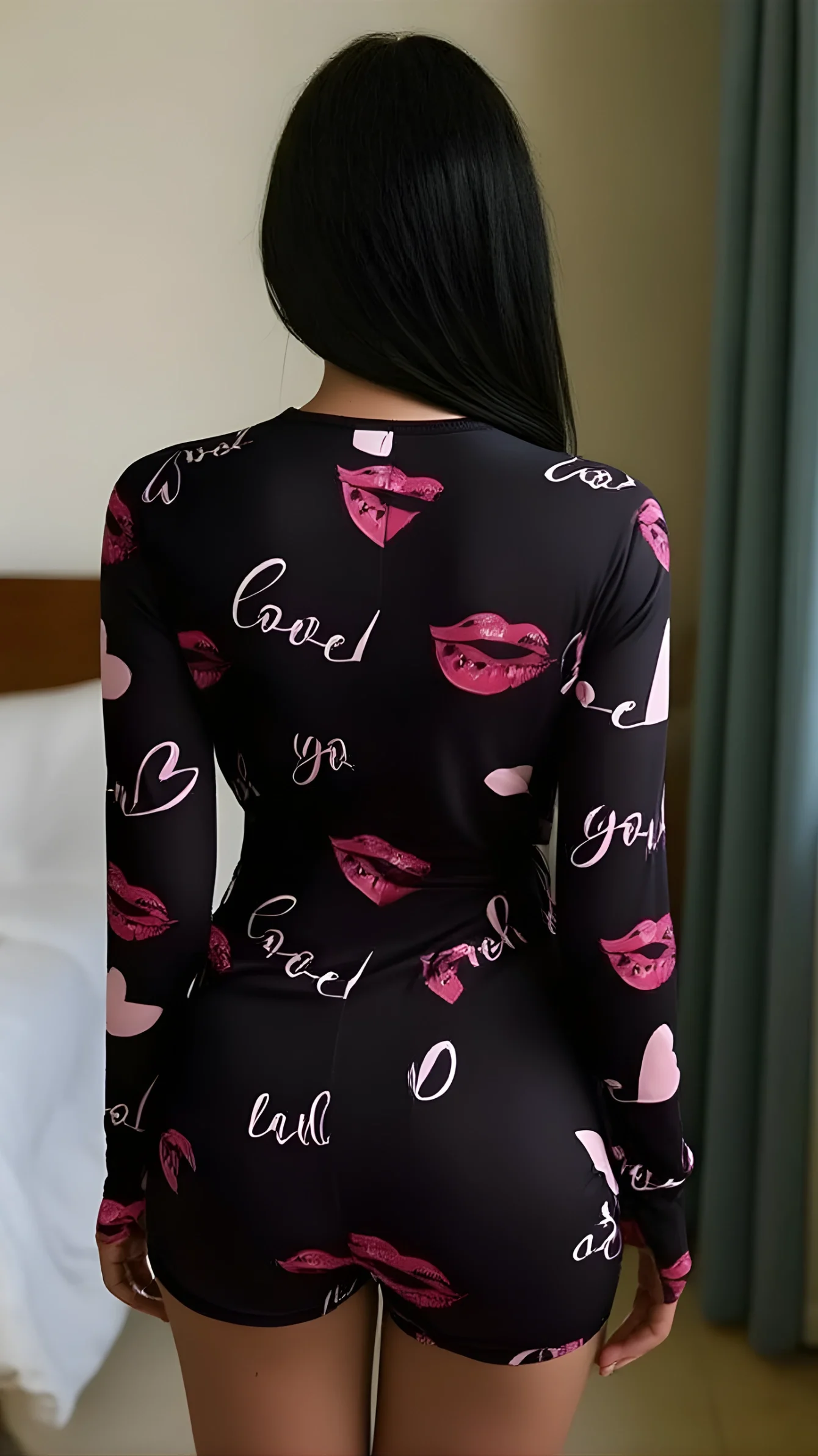 Luna Lora Kiss Heart Dream Pamuklu Kırmızı Öpücük ve Kalp Desenli Düğmeli Uzun Kol Tulum Pijama, canlı kırmızı rengiyle enerjik ve romantik bir ev giyim stili sunar. Öpücük ve kalp desenleri pijamaya eğlenceli ve çekici bir hava katarken, pamuklu kumaşı gün boyu konfor sağlar.